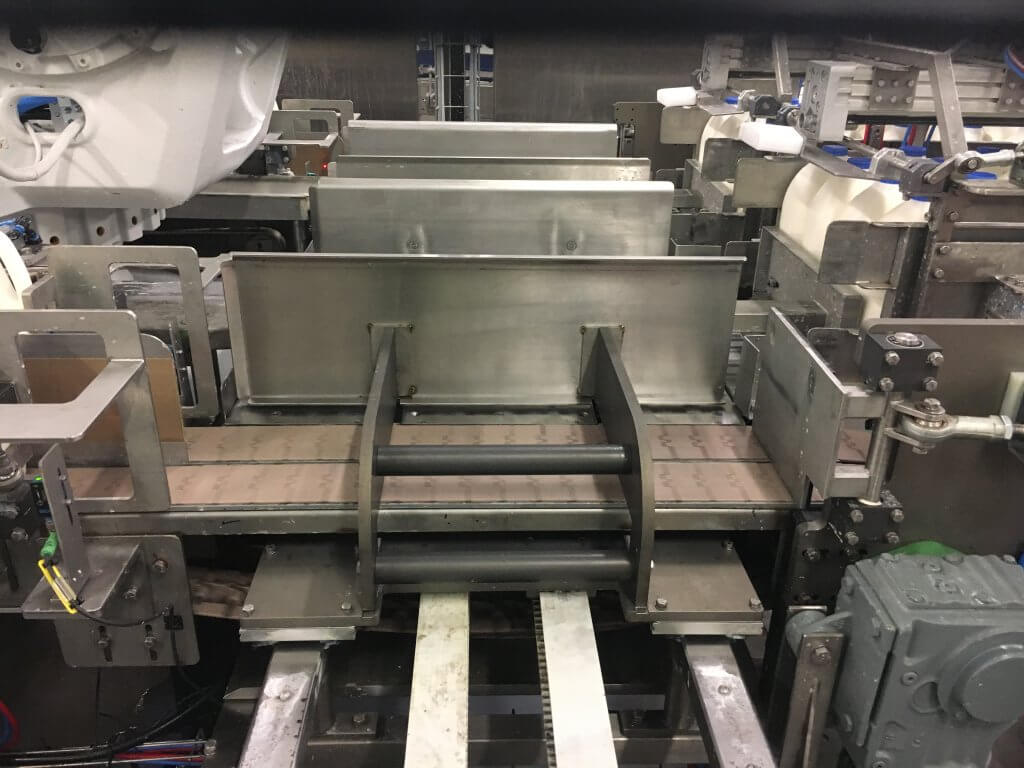 Hepco’s SL2 stainless steel linear guide is used on two axes in this machine; in the collation of the bottles into the ‘shelf’ format required (two shelves are being collated at one time), and to push the collated bottles into the head on the robot. With loads of 20kg on collation and 40kg when pushing into the robot head, Hepco’s SL2 system is eminently able to accommodate with a load capacity of up to 1000kg.